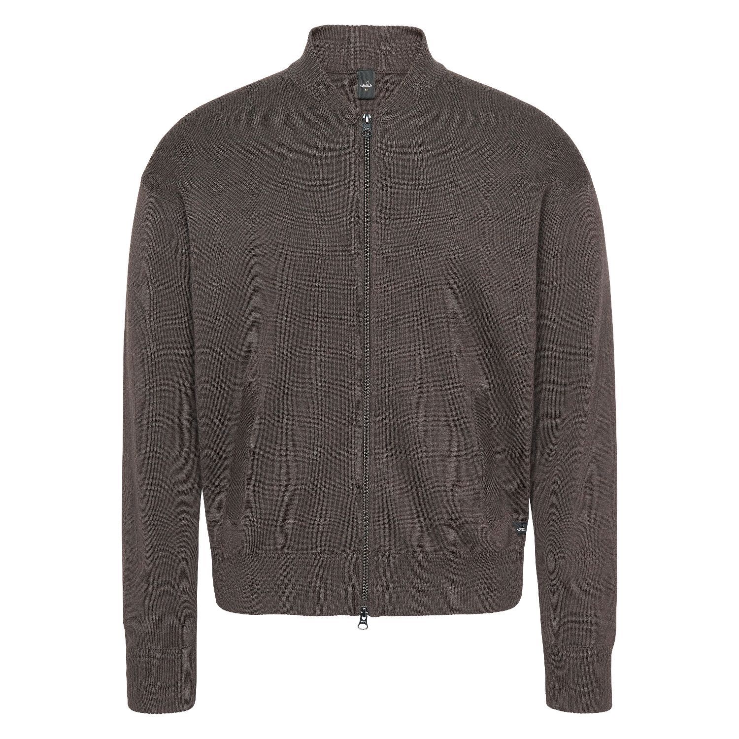 De bomber is gemaakt van 100% merino wol en heeft twee steekzakken met rits en een volledige ritssluiting.